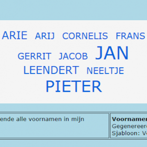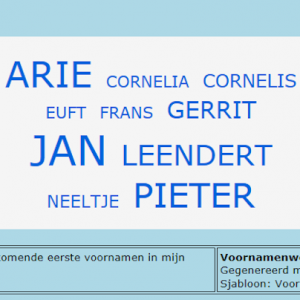 In AldFaer een selectie makend op de achternaam Verbaas en daarvan een 'voornamenwolk' laten maken levert het bovengenoemde resultaat op.